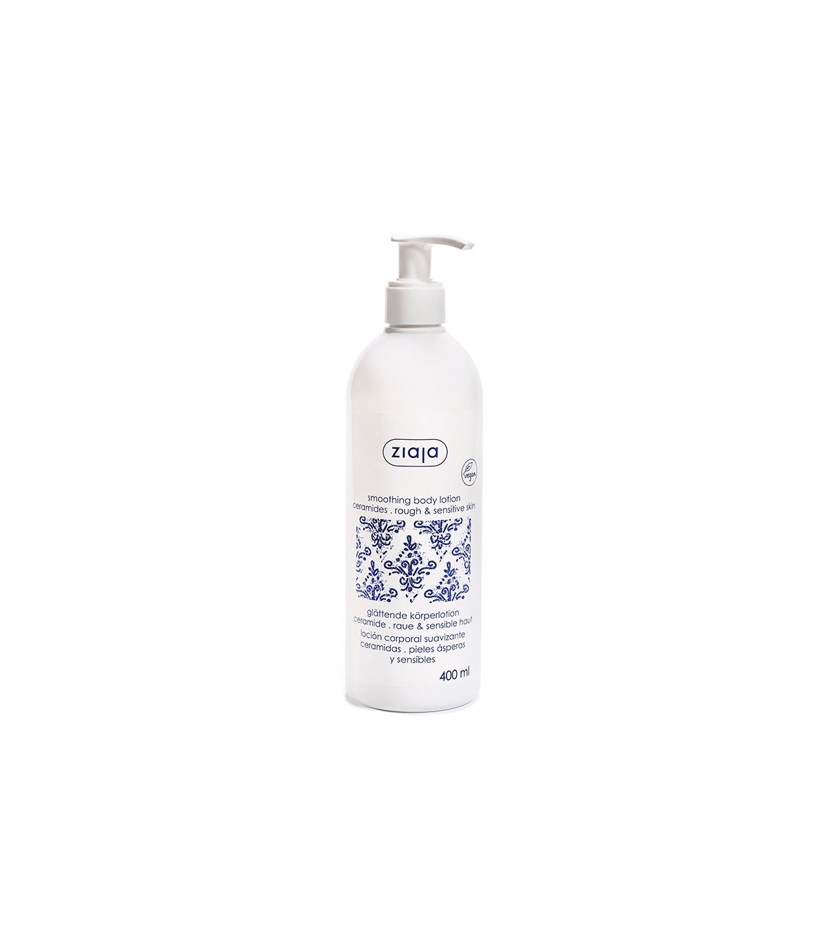 Loción corporal suavizante con ceramidas 1, 3, 6 y Manteca de karité para la piel áspera y sensible.