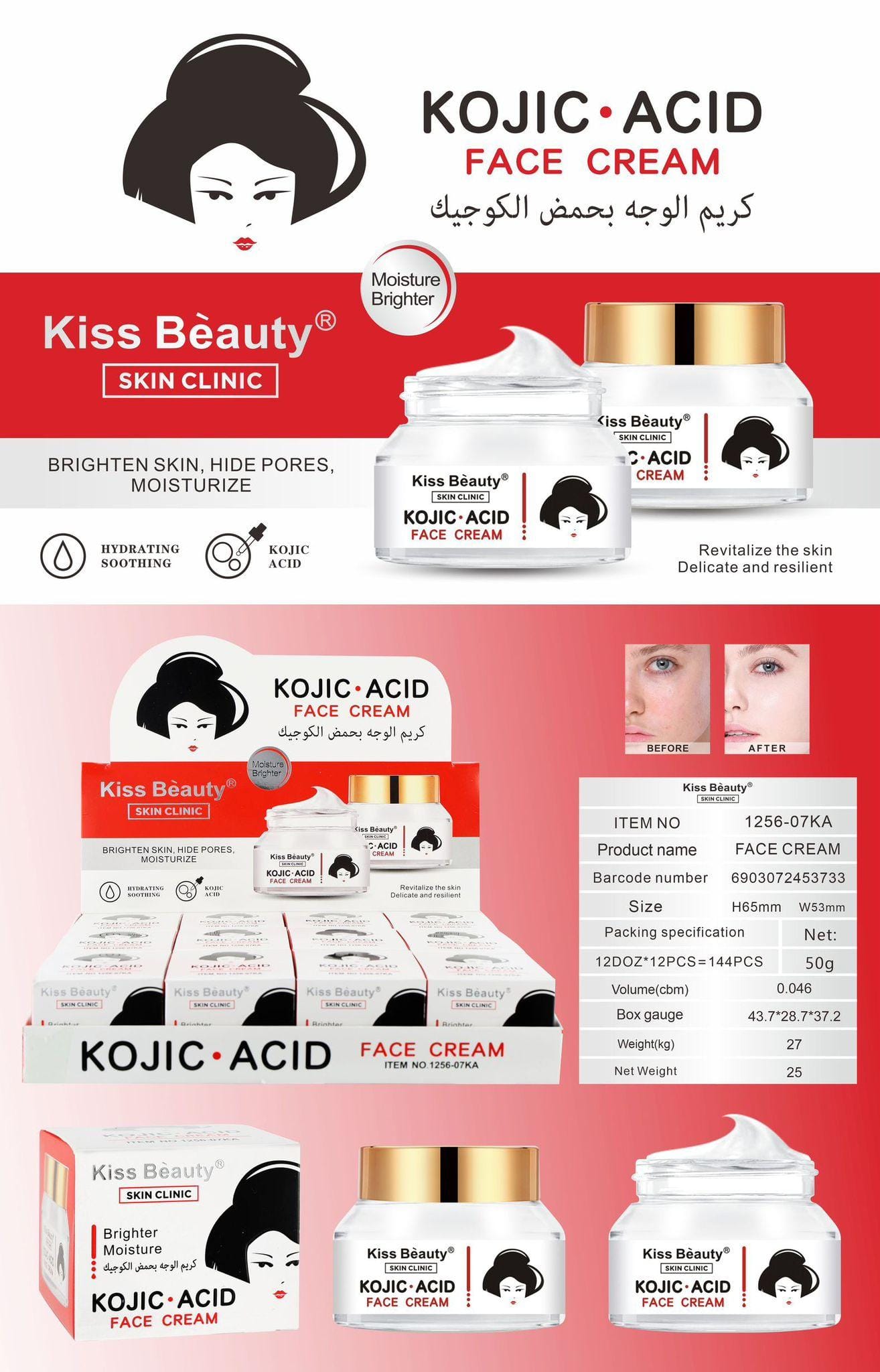 Crema facial coreana con ácido kojico. Hidratante y blanqueadora