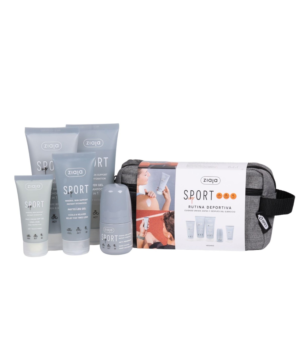 Pack de 5 cosméticos unisex esenciales para el cuidado antes y después del ejercicio. ¡Listos para llevar en su práctico neceser!